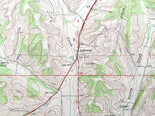 Antique Jelloway, Ohio 1961 US Geological Survey Topographic Map — Knox, Richland, Ashland County, Worthington, Hanover, Pike, Brown, OH