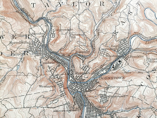 Antique Johnstown, Pennsylvania 1901 US Geological Survey Map – Westmoreland, Cambria County, Westmont, Morrellville, Ehrefeld, Conemaugh PA