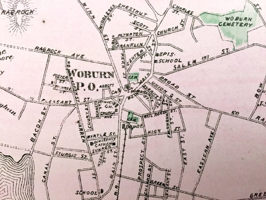 Antique 1875 Woburn & Burlington, Massachusetts Map from J.B. Beers Atlas of Middlesex County – Cummingsville, Havenville, Horn Pond, MA
