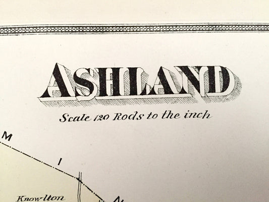 Antique 1875 Ashland, Massachusetts Map from J.B. Beers Atlas of Middlesex County – Sudbury River, Wild Cat Hill, Cold Spring Brook, Shakum
