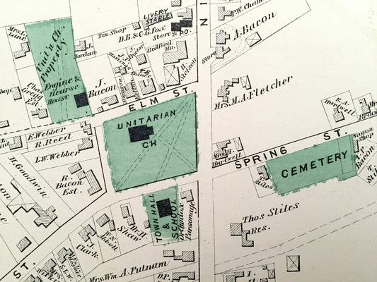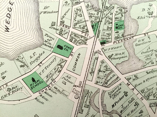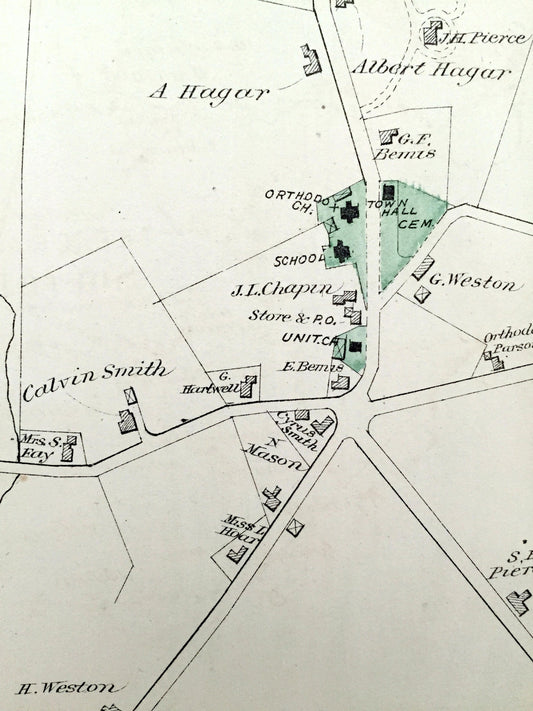 Antique 1875 Hopkinton, Massachusetts Map from J.B. Beers Atlas of Middlesex County – Hayden Row, Woodville, Whitehall Reservation
