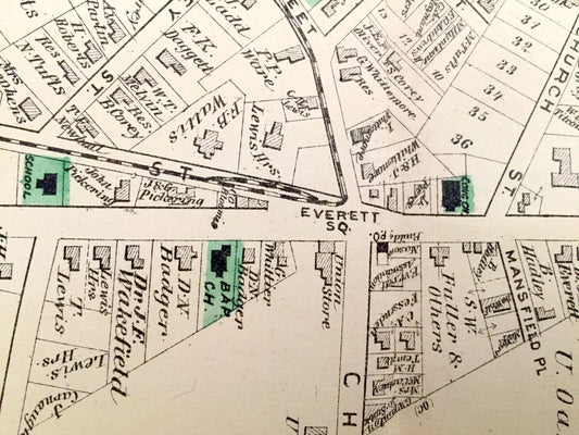 Antique 1875 Everett, Massachusetts Map from J.B. Beers Atlas of Middlesex County – Belmont Hills, Mount Washington, Mystic River, Woodlawn