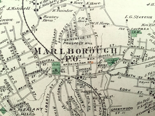 Antique 1875 Marlborough, Massachusetts Map from J.B. Beers Atlas of Middlesex County – Assabet River, Fort Meadow Reservoir, Williams Lake