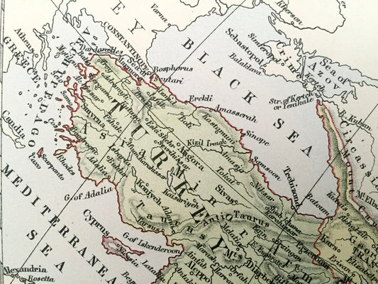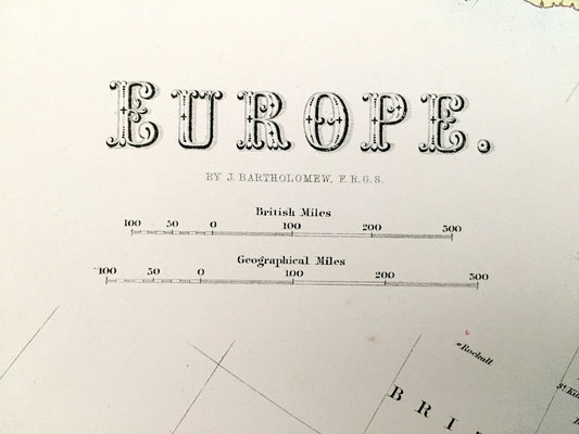 Antique 1888 Europe Map from A & C Black's World Atlas – England, France, Russia, Germany, Switzerland, Dublin, Stockholm, Madrid, Istanbul