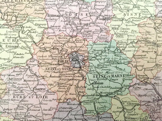 Antique 1888 France Map from A & C Black's World Atlas – Paris, Versailles, Rouen, Marseille, Nice, Lyon, Calais, Bay of Biscay, Seine River