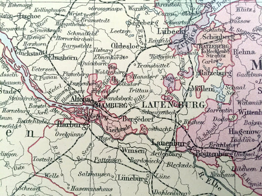 Antique 1888 German Empire Map from A & C Black's World Atlas – Germany, Czech Republic, France, Berlin, Munich, Stuttgart, Salzburg, Prague
