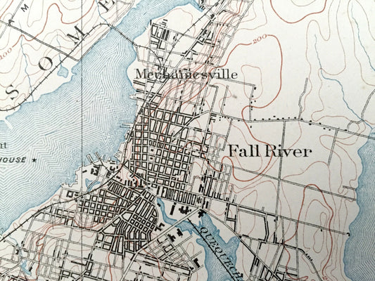 Antique 1885 Fall River, Massachusetts US Geological Survey Topographic Map – Sakonnet River, Swansea, Westport & Tiverton, Rhode Island, MA