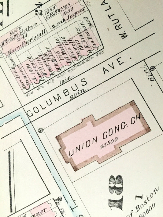 Antique 1883 Back Bay West, Boston, Massachusetts Map from G.W. Bromley Atlas – Columbus, Berklee School, Prudential, Christ Scientist, MA