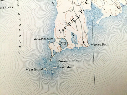 Antique 1885 Sakonnet, Rhode Island US Geological Survey Topographic Map – Middletown, Little Compton, Westport, Newport Massachusetts RI MA