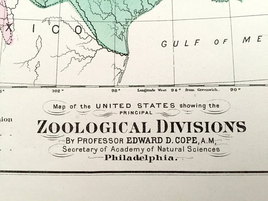 Antique 1874 Zoological Divisions Map of the USA from O.W. Gray's Atlas of United States of America; Stedman, Brown & Lyon – Edward D Cope