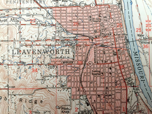 Antique Leavenworth, Kansas & Missouri River 1951 US Geological Survey Topographic Map – Kickapoo, Weston, Fair, Tracy, Platte City, Fort KS
