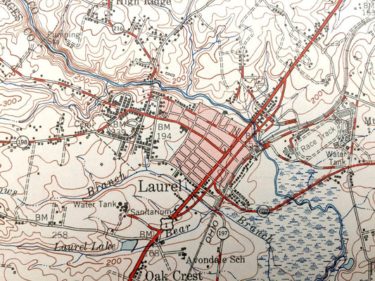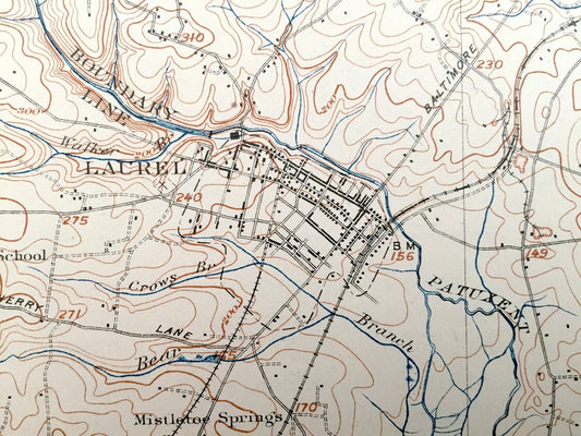 Antique Laurel, Maryland 1915 US Geological Survey Topographic Map – Hollywood, Beltsville, Greenbelt, Savage, Bowie, Jessup, Fort Meade