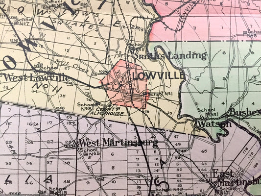 Antique Lewis County, New York 1911 New Century Atlas Map – Lowville, Port Leyden, Lyons Falls, Copenhagen, Harrisville, Croghan, Diana, NY