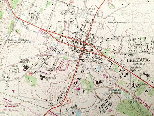 Antique Leesburg, Virginia 1952 US Geological Survey Topographic Map – Loudoun County, Woodburn Leedsville Oatlands Trap Rock Maryland VA MD