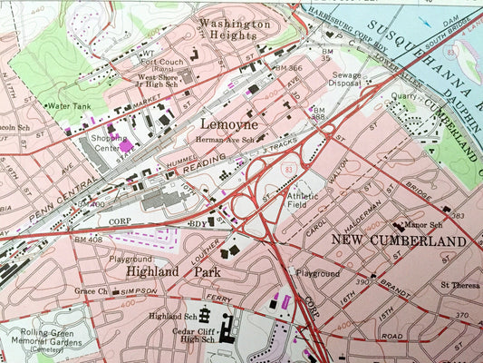 Antique Lemoyne, Pennsylvania 1963 US Geological Survey Topographic Map – Cumberland, York County, Shiremanstown, Bowmansdale, Lisburn, PA