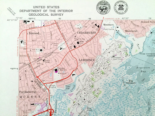 Antique Lawrence, New York 1966 US Geological Survey Topographic Map – Queens, Nassau County, Hempstead, Long Beach, Cedarhurst, Inwood, NY