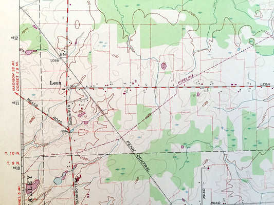 Antique Leon, Ohio 1959 US Geological Survey Topographic Map — Ashtabula County, Pierpont, Denmark, Dorset, OH, Crawford County, Conneaut PA