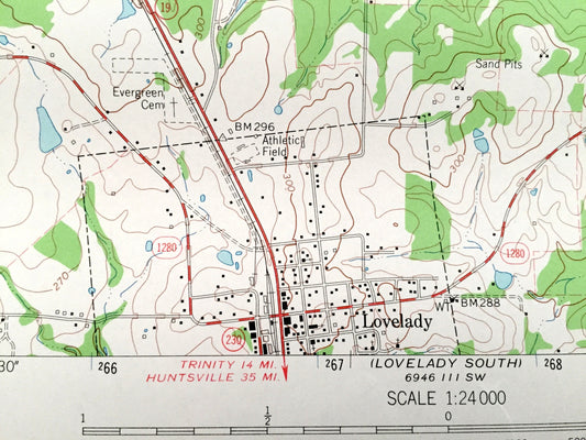 Antique Lovelady, Texas 1963 US Geological Survey Topographic Map – Smith Grove, Cut, Missouri Pacific Railroad, Houston County