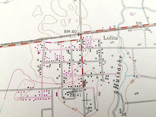 Antique Lolita, Texas 1952 US Geological Survey Topographic Map – Vanderbilt, Redfish Lake, Lavaca River, Menefee Lake No 1 & 2