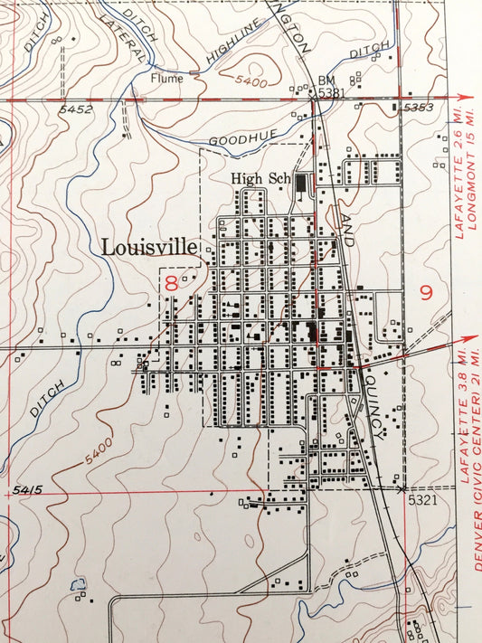 Antique Louisville, Colorado 1957 US Geological Survey Topographic Map – Boulder, Jefferson County, Superior, Boulder, Marshall, Denver, CO