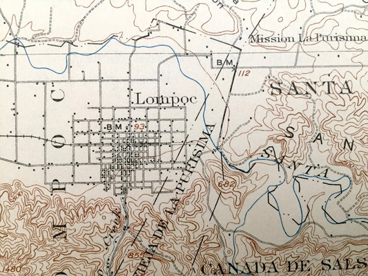 Antique Lompoc, California 1905 US Geological Survey Topographic Map – Santa Barbara, San Luis Obispo, Santa Maria, Los Padres Concepcion CA