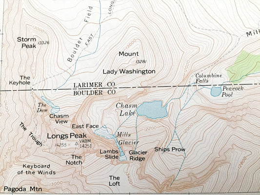 Antique Longs Peak, Colorado 1961 US Geological Survey Topographic Map – Boulder, Larimer County, Estes Park, Beaver Point, CO