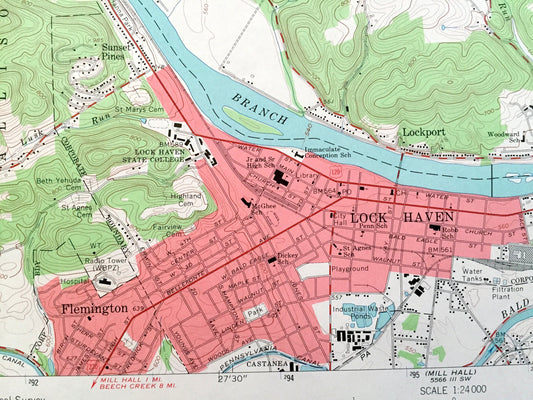 Antique Lock Haven, Pennsylvania 1965 US Geological Survey Topographic Map – Clinton County, Flemington, Woodward, Gallagher, Dunnstable, PA