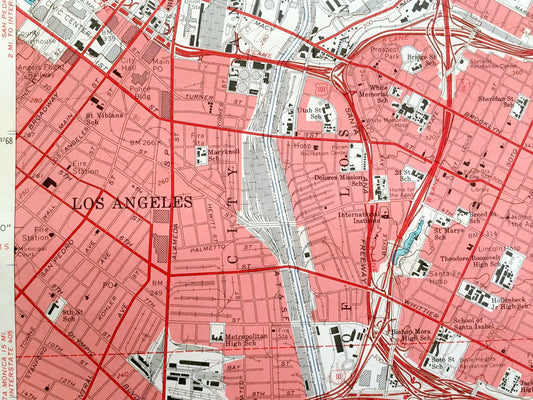 Antique Los Angeles, California 1966 US Geological Survey Topographic Map – Pasadena, San Rafael, Vernon, Monterey Park, Alhambra Elysian CA