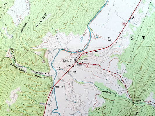 Antique Lost City, West Virginia 1966 US Geological Survey Topographic Map – Hardy County, Lost River, South Fork, WV, Shenandoah County, VA