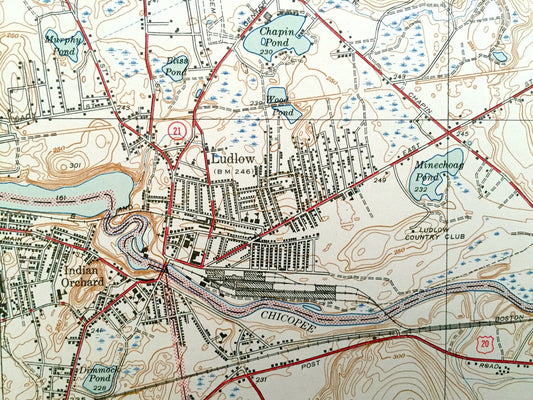 Antique Ludlow, Massachusetts 1944 US Geological Survey Topographic Map – Hampden, Hampshire County, Granby, Belchertown, Palmer, Monson, MA