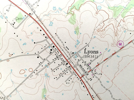 Antique Lyons, Texas 1960 US Geological Survey Topographic Map – Center Line, Davidson, Burleson County