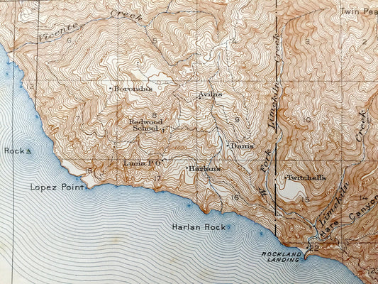 Antique Lucia, California 1921 US Geological Survey Topographic Map – Monterey County, Tassajara Hot Springs, Lopez Point, Los Padres, CA