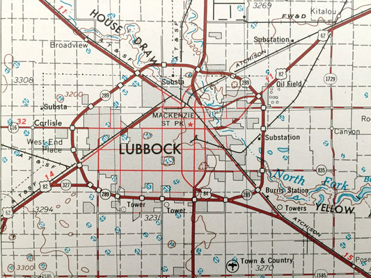 Antique Lubbock, Texas 1954 US Geological Survey Topographic Map – Slaton, Tahoka, Idalou, Abernathy, Floydada, Crosbyton, Aspermont Spur TX