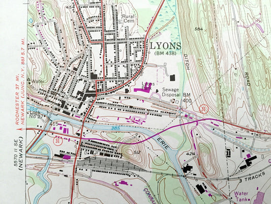 Antique Lyons, New York 1952 US Geological Survey Topographic Map – Wayne, Ontario, Seneca County, Rose, Galen, Junius, Phelps, Clyde, NY