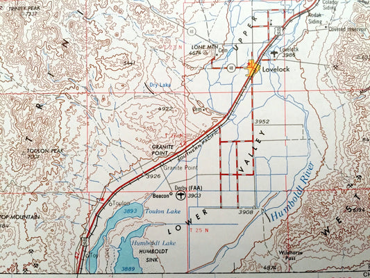 Antique Lovelock, Nevada 1955 US Geological Survey Topographic Map – Pyramid Lake, Buena Vista Valley, Toulon, Woolsey, Humboldt Range, NV