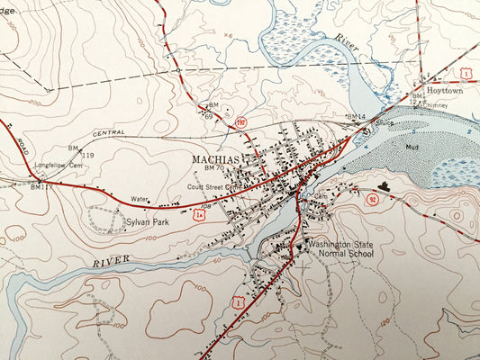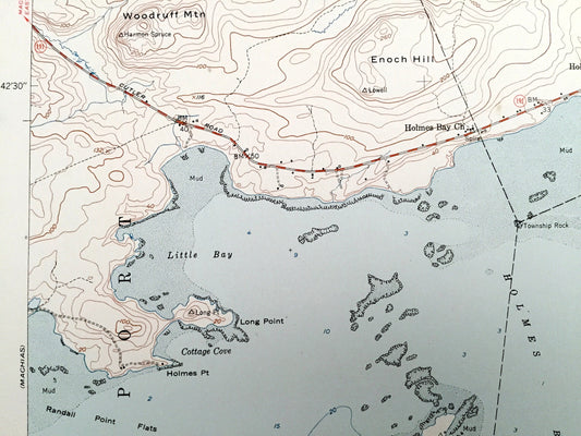 Antique Machias, Maine 1951 US Geological Survey Topographic Map – Washington County, Marshfield, Whitneyville, Roque Bluffs, Machiasport ME