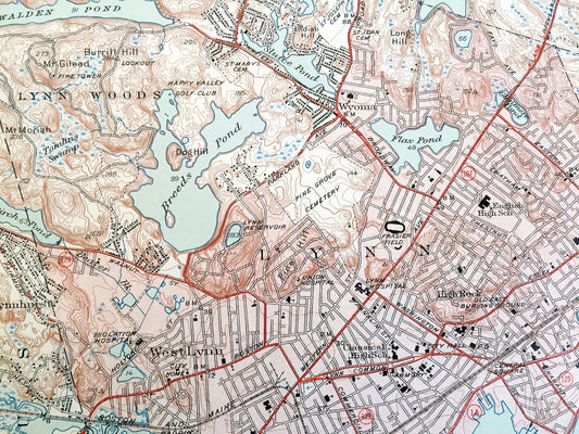 Antique Lynn, Massachusetts 1946 US Geological Survey Topographic Map – Suffolk, Essex County, Peabody, Salem, Marblehead, Swampscott, MA
