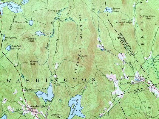 Antique Lovewell Mountain, New Hampshire 1957 US Geological Survey Topographic Map – Washington, Stoddard, Marlow, Lempster, Windsor, NH