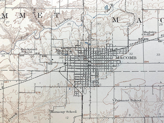 Antique Macomb, Illinois 1914 US Geological Survey Topographic Map – McDonough, Schuyler County, Bethel, Industry, Emmet, Mound, Bardolph IL