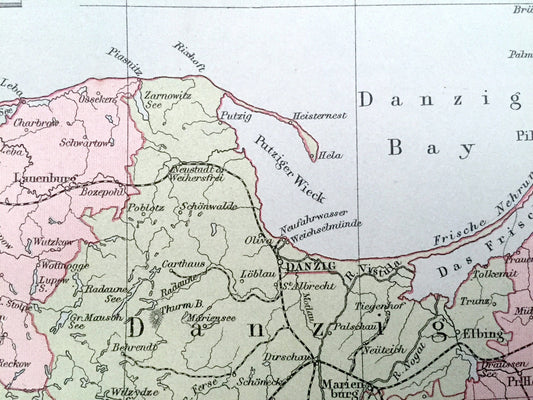 Antique 1888 German Empire Map from A & C Black's World Atlas – Poland, Russia, Lithuania, Warsaw, Wrocław, Gdańsk, Kaliningrad, Baltic Sea