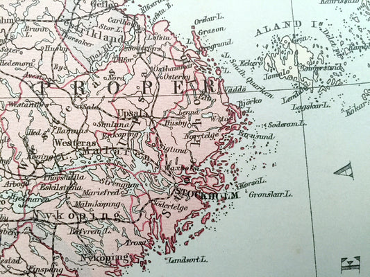 Antique 1888 Scandinavia Map from A & C Black's World Atlas – Norway, Sweden, Denmark, Finland, Russia, Stockholm, Bergen, Oulu, Baltic Sea