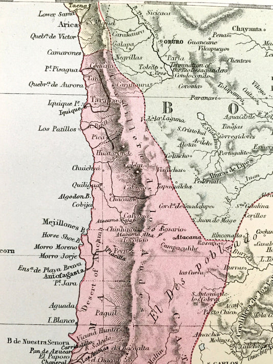 Antique 1888 South America Map from A & C Black's World Atlas – Chile, Argentina, Bolivia, Brazil, Uruguay, Paraguay, Buenos Aires, Asunción