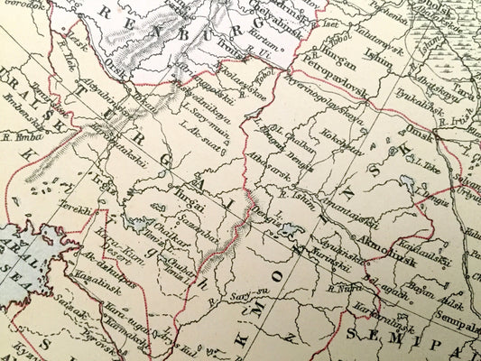 Antique 1888 Russia in Asia Map from A & C Black's World Atlas – Kazakhstan, Siberia, Yakutsk, Chita, Arctic Ocean, Lake Baikal, Bering Sea