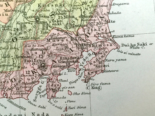 Antique 1888 Japan Map from A & C Black's World Atlas – Korea, Russia, Tokyo, Osaka, Kyoto, Yokohama, Nagoya, Sea of Japan, Gulf of Tartary