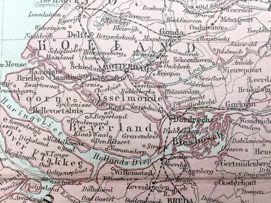 Antique 1888 Holland and Belgium Map from A & C Black's World Atlas – France, Germany, Amsterdam, Brussels, Ghent, North Sea, Moselle River