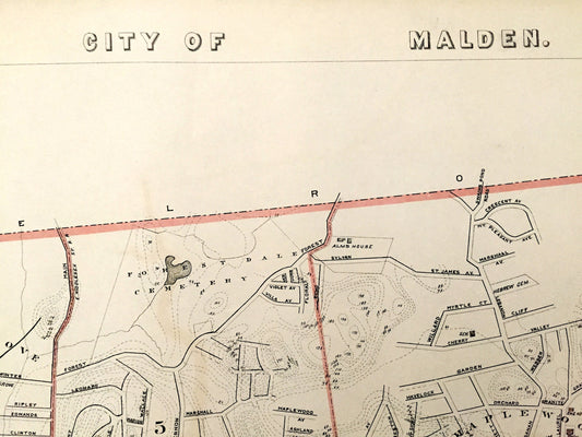 Antique 1891 Malden, Massachusetts Street Map from George H Walker & Co – Middlesex County, Malden Canal, Maplewood, Linden, Highlands, MA