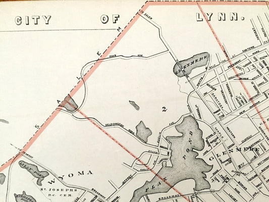 Antique 1891 Lynn, Massachusetts Street Map from George H Walker & Co – Essex County, Walden Pond, Breeds Pond, Saugus River, Lynn Harbor MA