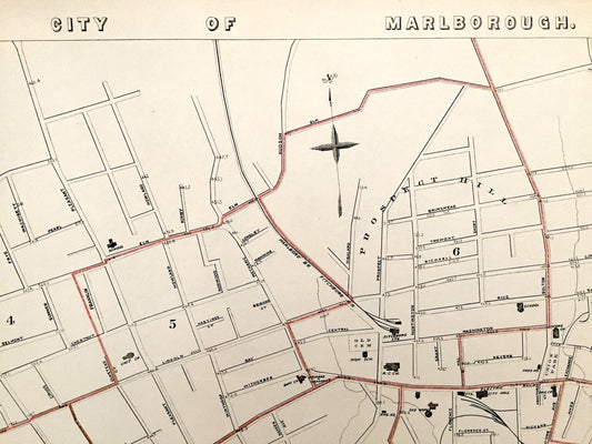 Antique 1891 Marlborough, Massachusetts Street Map from George H Walker & Co – Middlesex County, Williams Pond, Mt Pleasant, Sligo Hill, MA