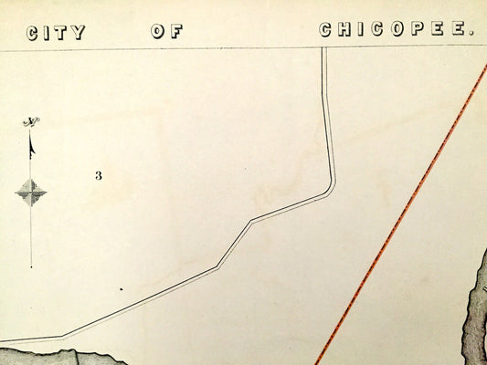 Antique 1891 Chicopee, Massachusetts Street Map from George H Walker & Co – Hampden County, Connecticut River, Chicopee River, cemetery, MA