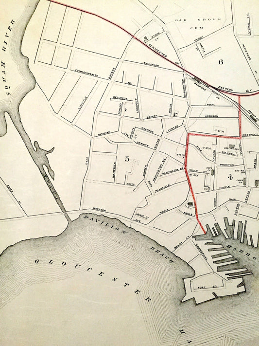 Antique 1891 Gloucester, Massachusetts Street Map from George H Walker & Co – Essex County, Cape Ann, Harbor Cove, Rocky Neck, Ten Pound, MA